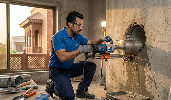 Accurate core cutting for walls and slabs to create openings for pipes, cables, and ducts without damaging structural integrity or surrounding areas.